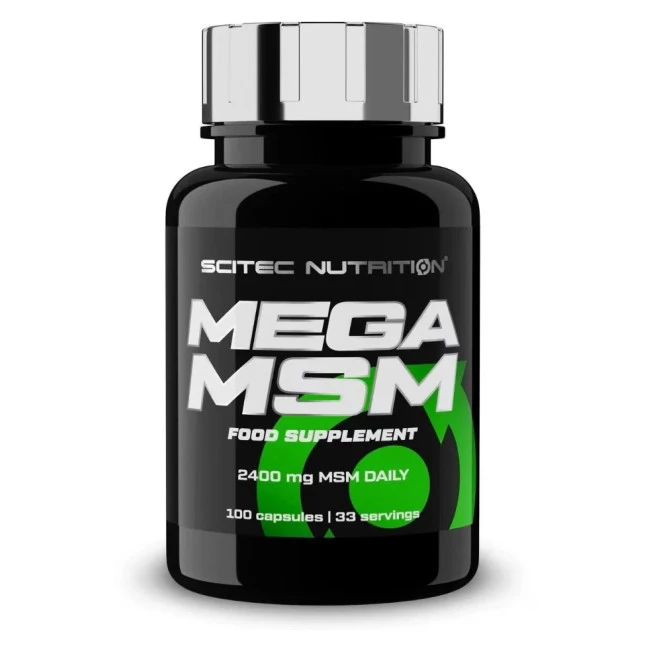 Харчова спортивна добавка від популярного угорського виробника спортивного харчування компанії Scitec Nutrition. Препарат Mega MSM (метилсульфонілметан, або харчова сірка), в основному використовується організмом для зміцнення та відновлення сполучних тканин, має протизапальні властивості, пригнічуючи біль у пошкоджених суглобах. Добавка MSM часто використовується в препаратах - хондропротекторах, разом із добавками, глюкозаміном і хондроїтином, як засіб, що сприяє їхньому максимальному засвоєнню. Доступне фасування: 100 капсул.