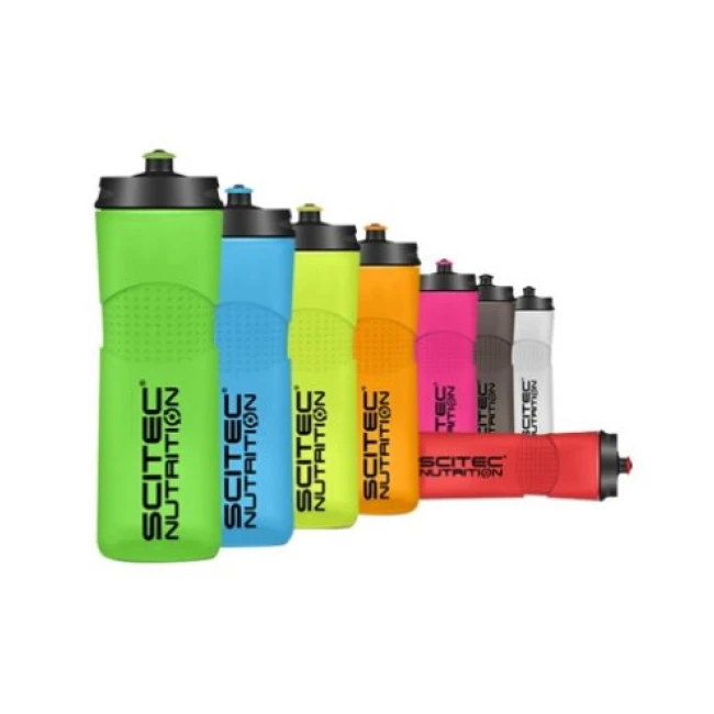 Нова спортивна фляга об'ємом 650 мл, для зручнішого вживання та транспортування питної води, амінокислот BCAA, та інших напоїв, зі зручною спортивною соскою нагорі, представлена популярним угорським виробником спортивного харчування, компанією Scitec Nutrition. Фляга дуже зручна, легка в експлуатації, має стильний і презентабельний вигляд. Доступні кольори: чорний, зелений, синій, жовтий, помаранчевий, червоний, білий та рожевий. Об'єм: 650 мл.