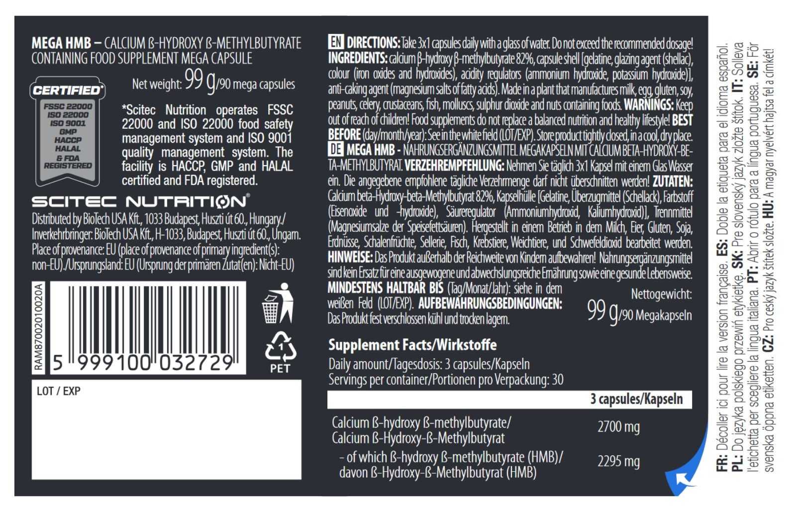 | HMB (гідроксиметилбутират) | 2700 мг |