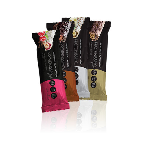Дуже смачні батончики з різними прошарками від угорського виробника спортивного харчування. Scitec Nutrition Proteinissimo Prime важать 50 г, кожен батончик містить аж по 16 г білка (32%), містить всього 1,7 г цукру і 186 калорій. Випускаються батончики у смаках: Chocolate Vanilla (шоколад з ваніллю), Double chocolate (подвійний шоколад), Peanut butter (арахісова паста), Vanilla Raspberry (ваніль з малиною).
