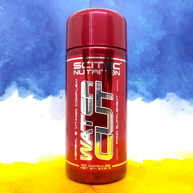 Жироспалювач Scitec Nutrition Water Cut. Це добавка для виведення зайвої води з організму на натуральній основі, угорського виробництва. Випускають у фасуванні 100 капсул і використовують для поліпшення рельєфу. Water Cut набагато ефективніше дієт у боротьбі із зайвою вагою та відмінно допомагає у досягненні мети ідеального тіла.