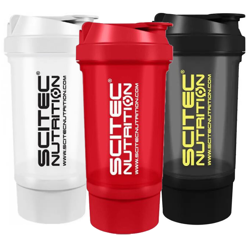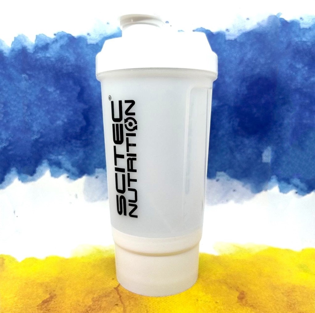 Двосекційний спортивний шейкер від популярного угорського виробника спортивного харчування компанії Scitec. Shaker 2 in 1 використовується переважно для приготування спортивних (і не тільки), коктейлів. Аксесуар додатково оснащений знімною секцією, що дозволяє мати в запасі пару порцій порошку. У продажу є 600 мл шейкери, рожевого, салатового, синього та червоного кольору.