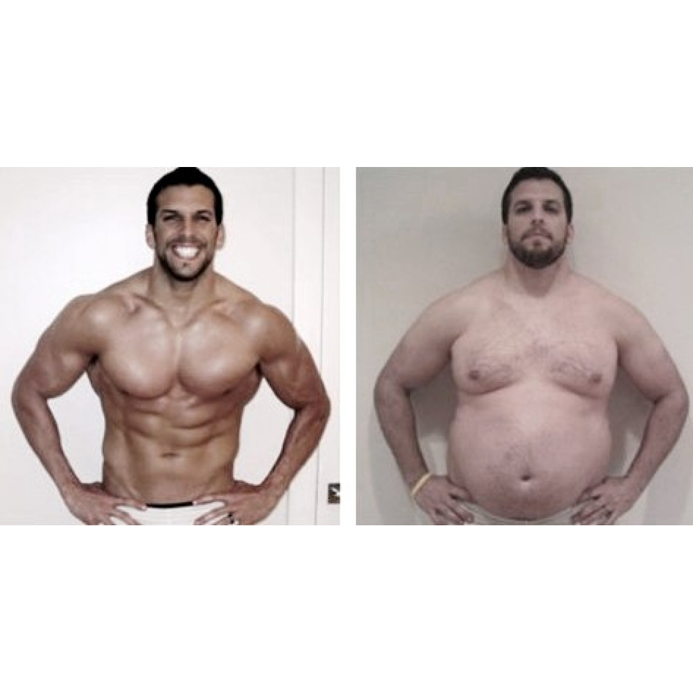 Велике дякую, і наш персональний респект американському тренеру з фітнесу - Дрю Меннінгу, за експеримент, у якому він на своєму прикладі довів усім, що за бажання можливо все. Він розробив собі схему на рік. Перші півроку він не займався взагалі, їв що і коли хотів, і стрімко набирав вагу, зупинившись лише коли його вага досягла 120 кілограмів.