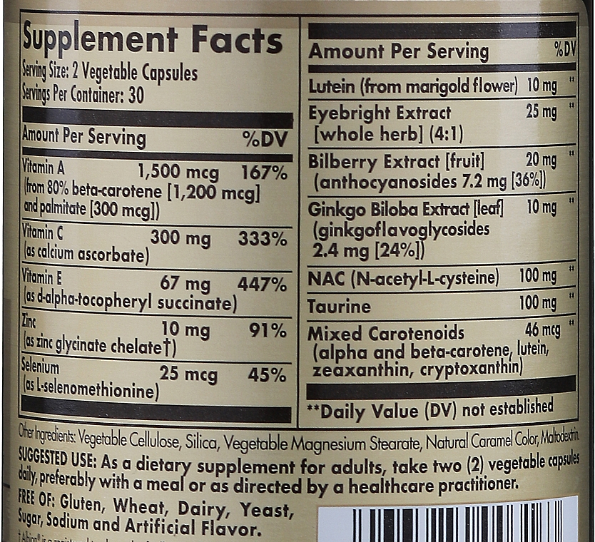 Solgar Bilberry Ginkgo Eyebright Complex Lutein