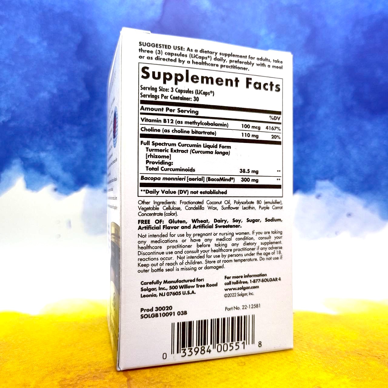 Американська харчова добавка Solgar Curcumin Brain Works, це засіб, який призначений покращити ясність розуму та самопочуття.
