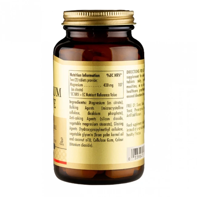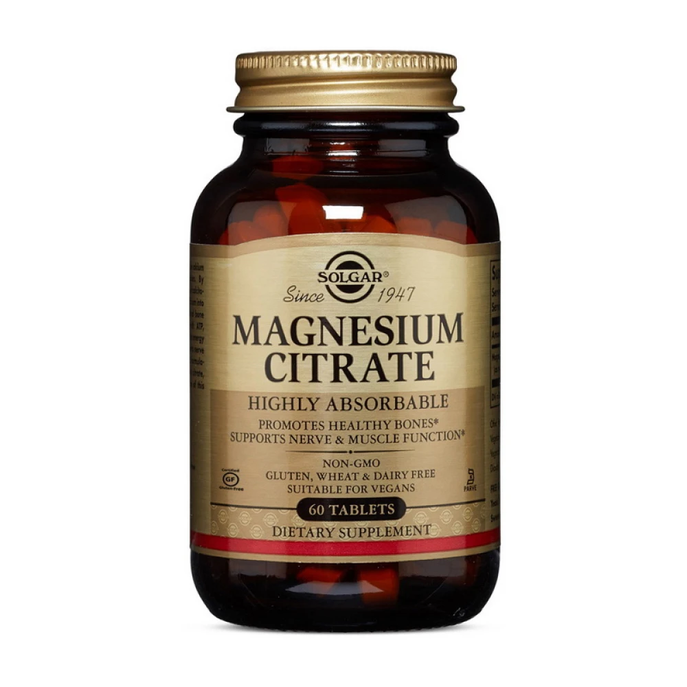 Магній високої якості, для зміцнення нервової системи, покращення кров'яного тиску, запобігання каменю в нирках та проти судом. Solgar Magnesium Citrate має високо засвоювану форму.