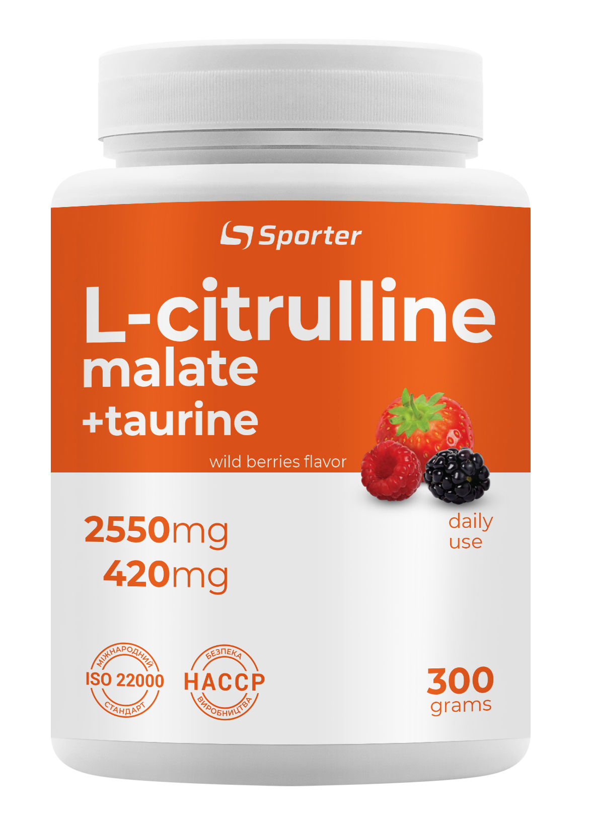 «Цитрусова» назва речовина отримувала рахунок отримання її з апельсинових скоринок. Потрібно воно для синтезування аргініну, нейтралізації та виведення продуктів розкладання амінокислот. Цитрулін малат є необхідним для здоров'я волосся, нігтів та формування нервової системи. Спортсмени віддають перевагу Sporter L - citrulline malate через здатність посилювати показники при фізичному навантаженні та покращувати спортивну форму.