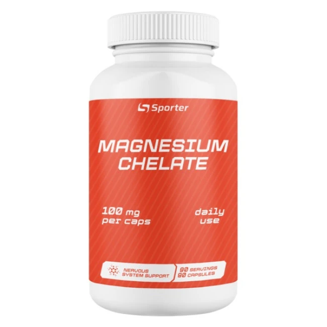 Магній у формі хелату відіграє важливу роль у боротьбі зі стресом, він знімає чутливість організму до зовнішніх подразників та гальмує збудливі процеси у нервовій системі. Sporter Magnesium Chelate поставляється у фасуванні по 90 капсул. Магній підтримує кістки здоровими, зменшує біль у суглобах, усуває судоми, нормалізує серцевий ритм та зменшує рівень стресу.