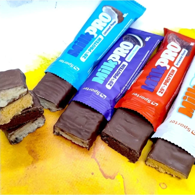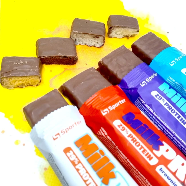 Батончики Sporter Milk Pro 29% Protein мають зручний формат, завдяки чому їх можна брати з собою в спортзал або в дорогу. Вони також допоможуть замінити шкідливі солодощі до чаю, що особливо важливо під час дієти, оскільки містять мінімум цукру та жирів. А що особливо приємно, ласуватись Sporter Milk Pro 29% Protein можуть як спортсмени, так і ті, хто зі спортом зовсім не знайомий.