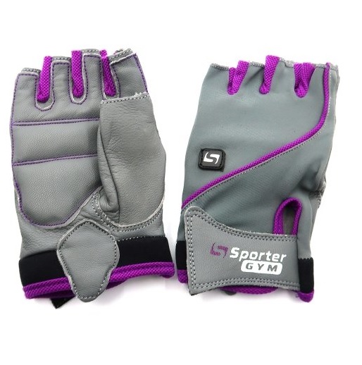 Жіночі пальчатки для занять спортом у сірому кольорі з фіолетовою смугою. Sporter Пальчатки NO MATTER 725А випускаються у 2 розмірах: С та М.