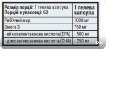 | Omega 3 (омега 3 жирні кислоти) | 750 мг |