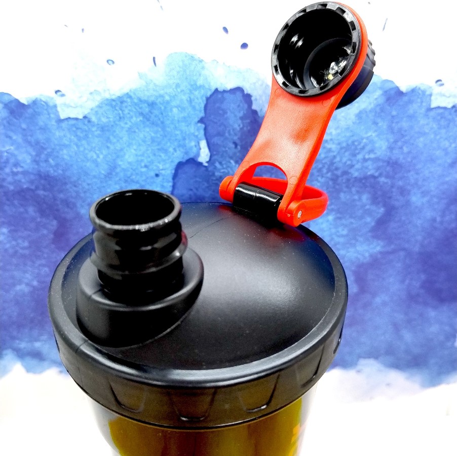 Стильний шейкер з кришечкою яка не загубиться, бо вона прикріплена до ручки-гачок, за яку дуже зручно тримати пляшку, та носити в залі, чи на вулиці. Всередині шейкера сітка, яка також має зручний крючок для того щоб легко доставати її з середини.