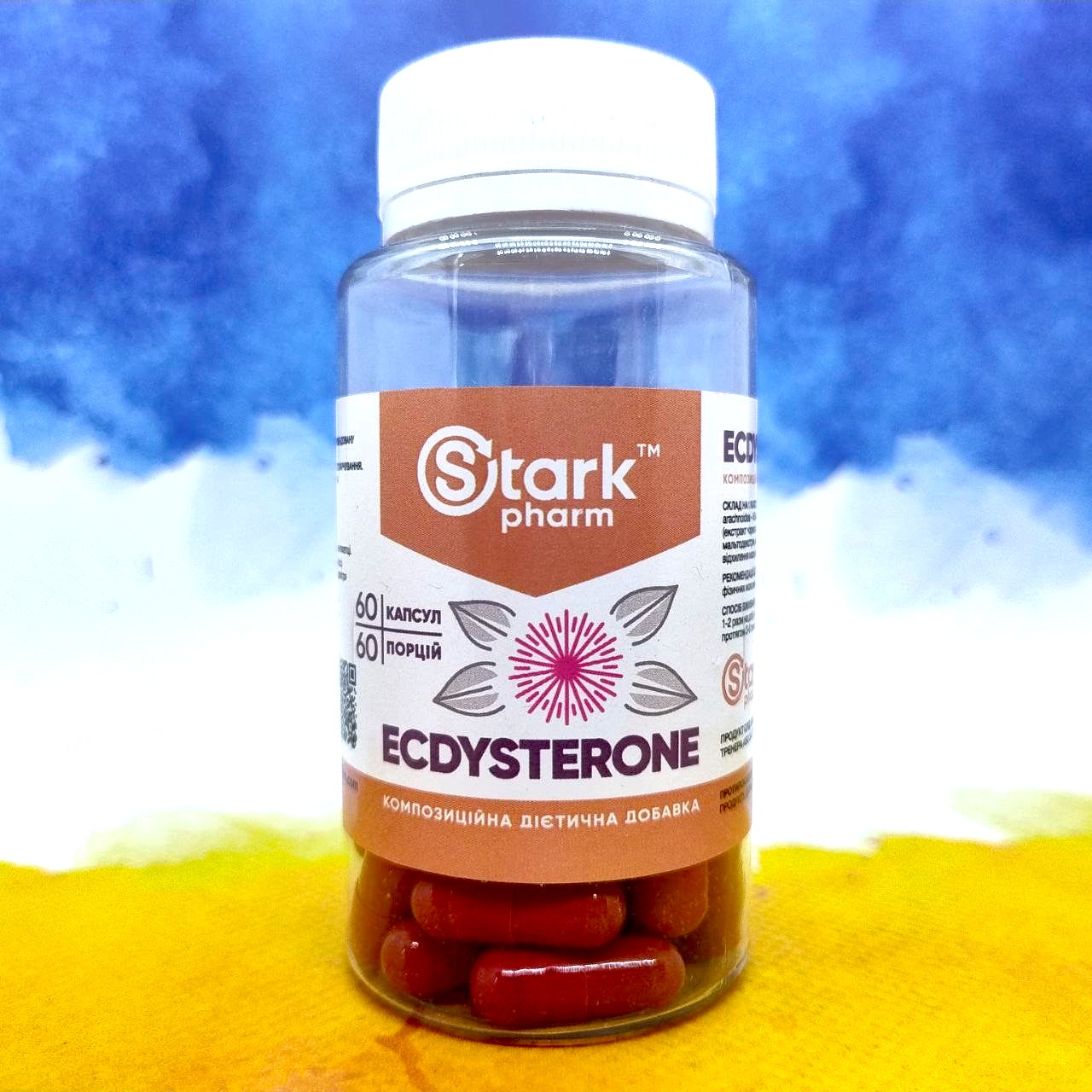 Добавка для підвищення тестостерону та гормону росту на рослинній основі. Stark Pharm Ecdysterone випускається у фасуванні 60 капсул і містить по 400 мг екдистерону на кожну капсулу, яку виробляють з екстракту левзея сафлороподібної.