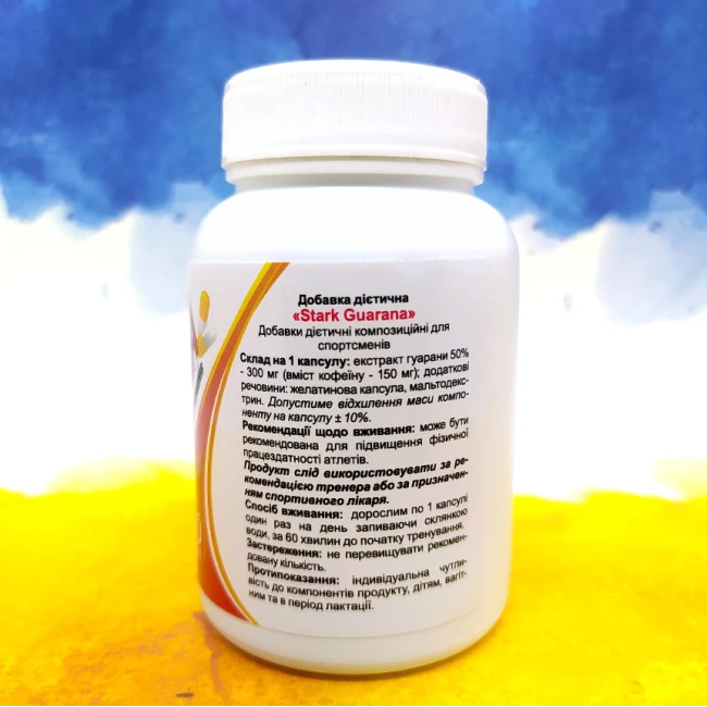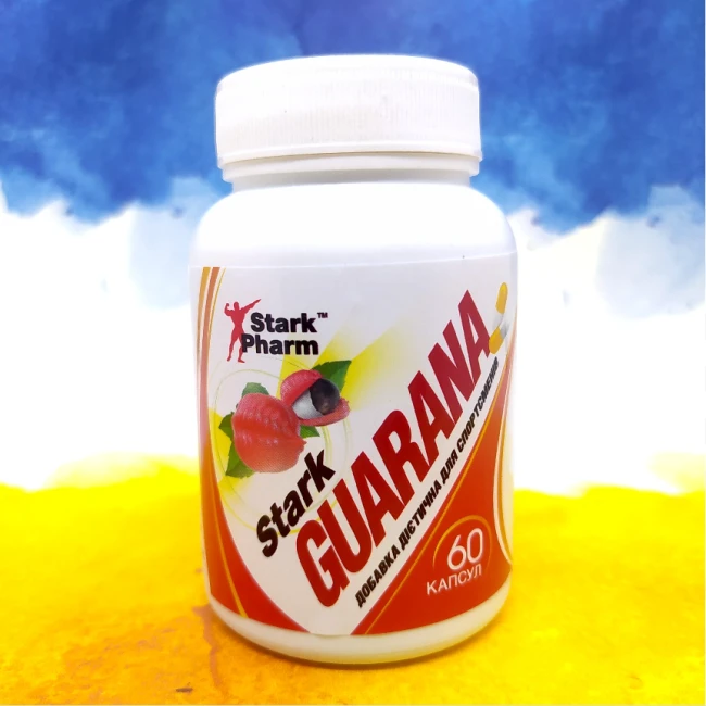 Гуарана в капсулах за шикарною ціною дозування 300 мг, яка містить 50% кофеїну. Stark Pharm Guarana 60 капсул піднімає концентрацію та увагу, а також можна використовувати під час схуднення та різних дієт.