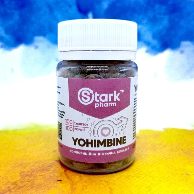 Йохімбін у дозуванні 10 мг на кожну капсулу з додаванням екстракту женьшеню та чорного перцю для кращого засвоєння та більшої синергії. Добавка призначена для зменшення кількості підшкірного жиру, а також для підвищення лібідо. Випускається Stark Pharm Yohimbine на українському заводі у фасуванні 100 пігулок.