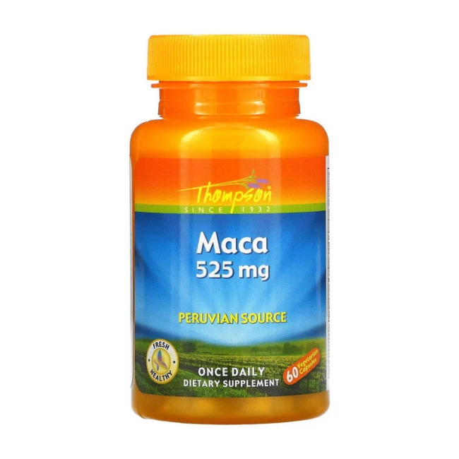 Росте Мака в горах на висоті до 5000 метрів над рівнем моря, а використовують для покращення кровообігу та збільшення рівня тестостерону у чоловіків. Thompson Maca містить на капсулу по 525 mg екстракту з кореня, і випускається у фасуванні 60 капсул.
