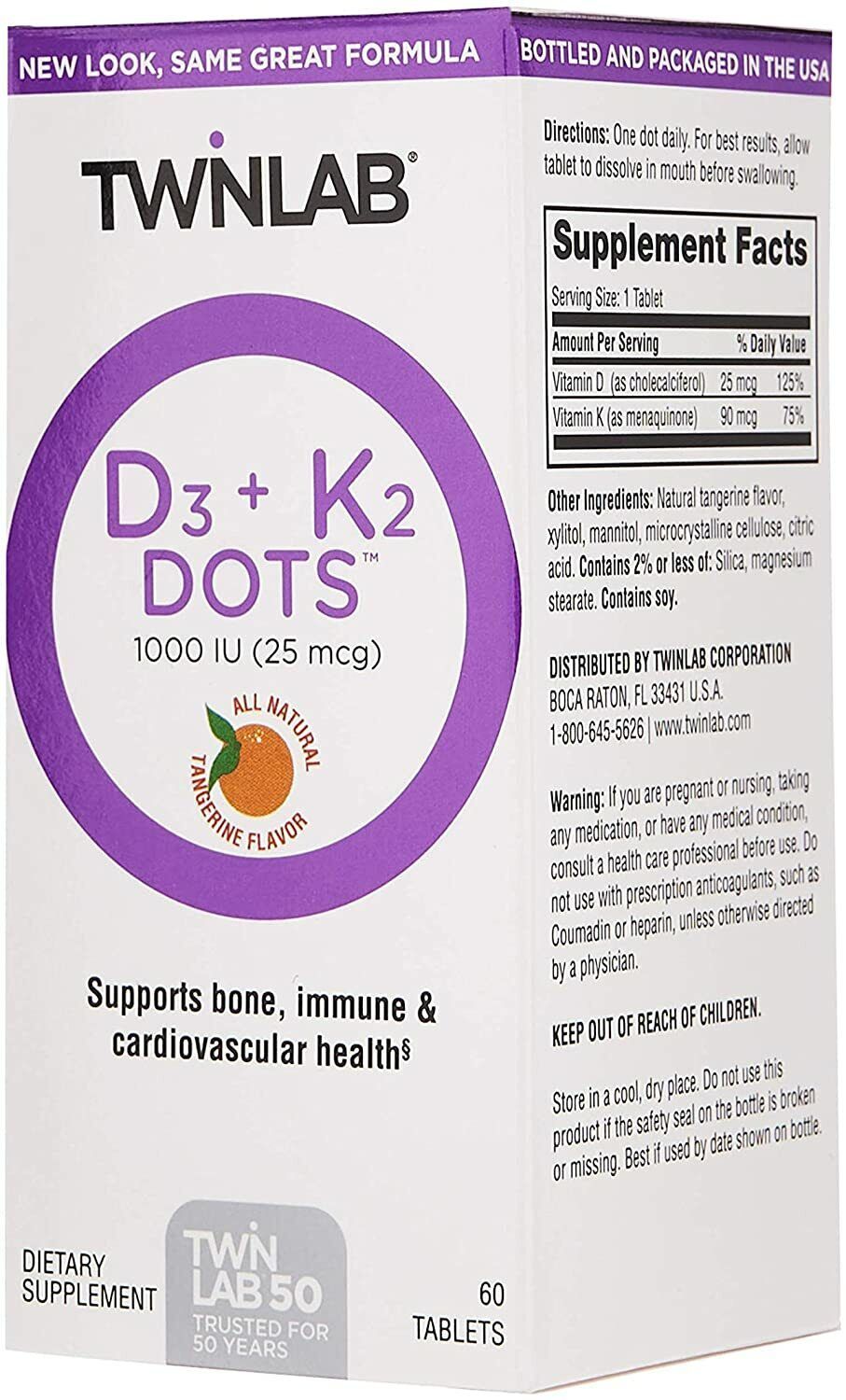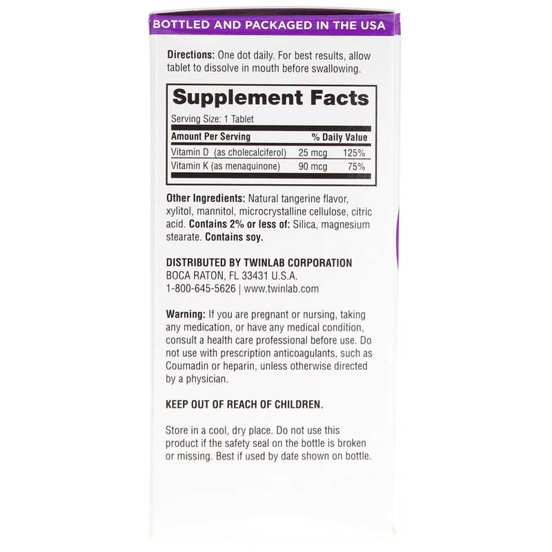 Twinlab D3 Dots + K2 All-Natural Tangerine 1000 IU (25 mcg)