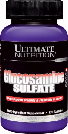 Хондропротектор от американского производителя спортивного питания Ultimate Nutrition. Glucosamine Sulfate - содержит 1000 мг. глюкозамина в 1 порции (2 капсулы). Глюкозамин воссоздается в организме хрящевой тканью суставов, является основным укрепляющим веществом для всех соединительных тканей. После усвоения глюкозамина организмом, продукт транспортируется к соеденительным тканям, где синтезируется в необходимые компоненты, в том числе и хондроитин, который в свою очередь входит в состав смазывающей суставы жидкости (синовиальная жидкость), основным предназначением которого является укрепление суставов и связок на этапе ростяжения и сжатия. Доступные фасовки: 120 капсул.