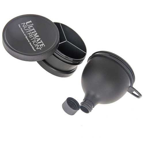 Один из топовых производителей спортивного питания в США, производитель по праву считающийся своеобразным эталоном действительно качественных продуктов, компания Ultimate Nutrition представляет вашему вниманию совершенно уникальный и единственный в своем роде аксессуар. Эта оригинальная вещица представляет собой удобную воронку для более аккуратного приготовления любимых напитков с прикручивающимся к ней кейсом для удобной транспортировки капсул и таблеток. Ultimate Nutrition Pillbox представляет собой довольно удобную и практичную модель таблетницы, которая раз и навсегда решит для вас вопрос хранения и переноски препаратов в капсульной и таблетированной форме в необходимых в данный момент дозировках, без необходимости повсюду таскать с собой целую охапку фирменных упаковок.