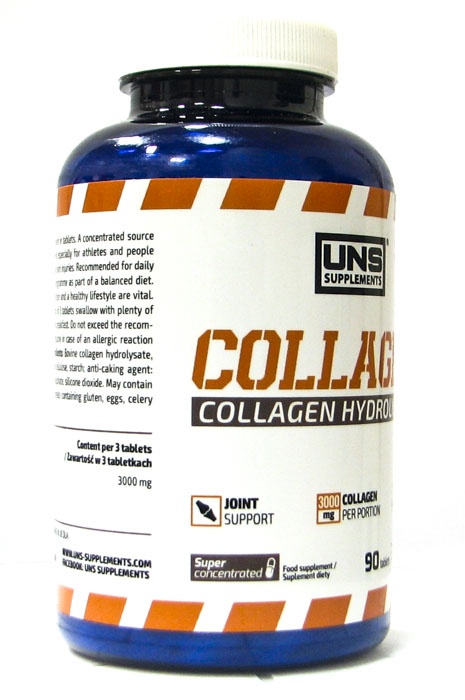 Стремительно набирающая популярность, молодая компания производитель спортивного питания из Польши - UNS готова представить вашему вниманию новую, таблетированную версию коллагена, под названием UNS Collagen Hydrolysate, выпущенную в фасовке 90 таблеток. Добавка предназначена для ка для спортсменов, постоянно подвергающих организм физическим перегрузкам, так и для обычных обывателей в качестве профилактики развития дегенеративных изменений, и болезней костей и суставов.