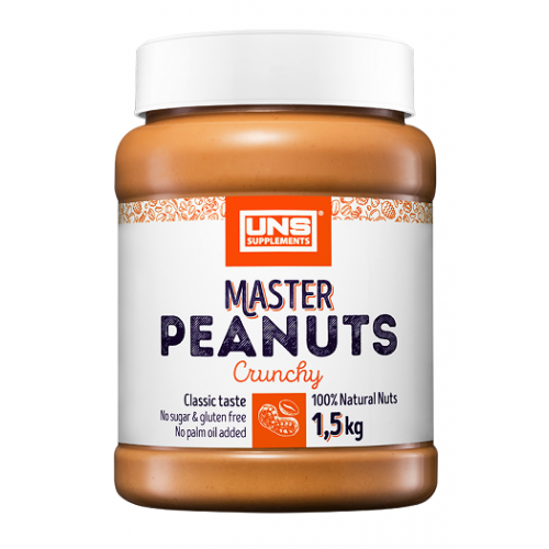 Арахисовая паста от польского производителя спортивного питания UNS. Продукт Master Peanuts - богат на полезные для нашего организма вещества (жиры белки углеводы), которые в целом служат основным ресурсом для поддержания жизнедеятельности человека. В продаже имеется фасовка в 1,5 кг, в хрустящей и густой форме.