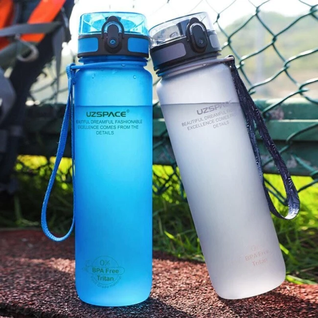 Пляшка для води та спортивного харчування найвищої якості, хочемо відзначити що соска за допомогою якої можна пити з пляшки воду закривається від попадання пилу, бруду та мікробів. Пляшка для води UZspace виробляють у різних, дуже гарних кольорах: сірий, салатовий, блакитний та рожевий. Також можна вибрати об'єм на будь-який смак: 350 мл, 500, 650 і 1000 мл = 1 літр. Залежно від обсягу пляшки бувають у витягнутій формі або у вигляді барильця.