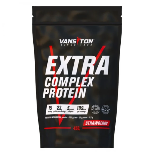 Добавка являє собою білковий комплекс, який діє на користь нарощування м'язів. Vansiton Extra Complex Protein швидко засвоюється організмом, коли амінокислоти потрапляють у кров. Починаючи діяти, добавка насичує, вгамовуючи голод, нарощує м'язи, відновлює і при цьому довго діє.