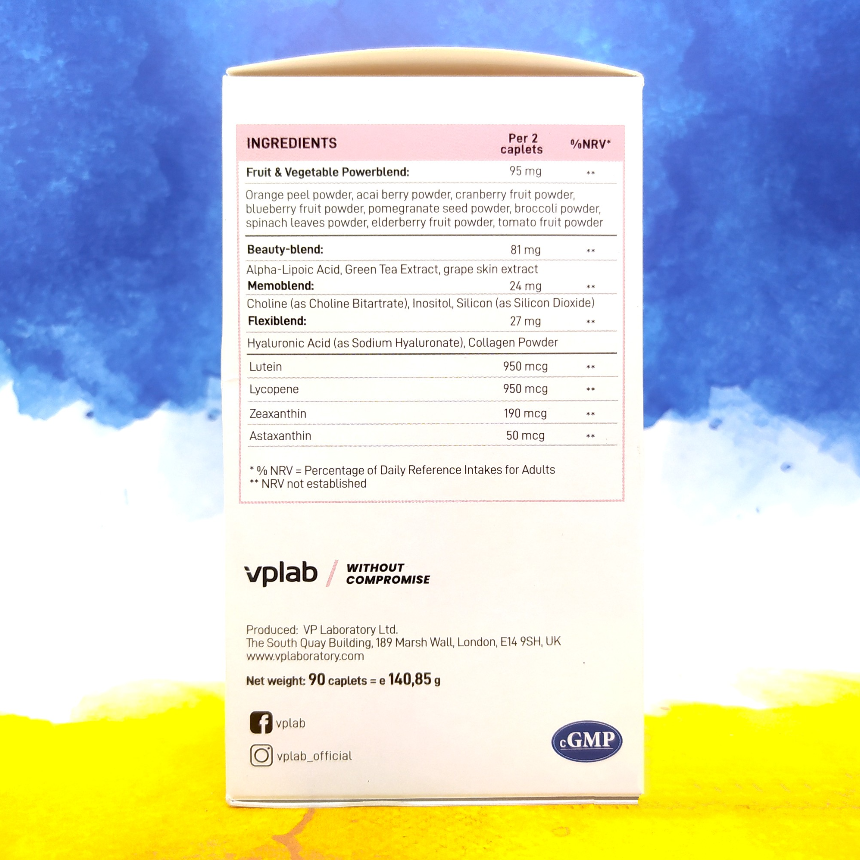 | Beauty-blend (бьюті-суміш) | 81 мг (альфа-ліпоєва кислота, екстракт зеленого чаю, екстракт шкірки винограду) |