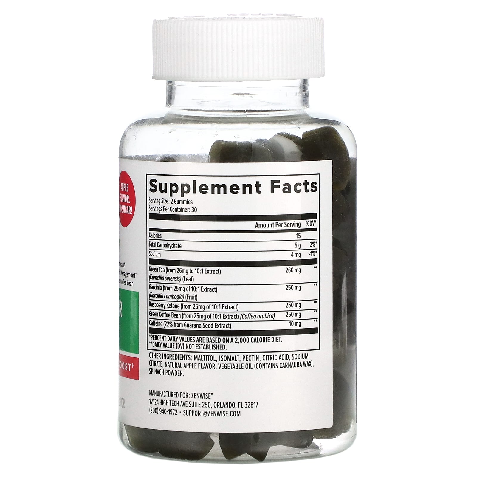 Жироспалювач, Fat Burner Gummies, Zenwise Health – це харчова добавка у формі жувальних цукерок зі смаком яблука для спалювання жиру