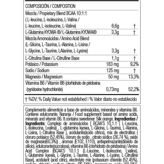 Під час ефективного тренування, коли ми окислюємо білкові структури для отримання енергії за рахунок зниження рівня лейцину в плазмі, важливо стимулювати відновлення та нарощування м'язової маси впродовж та після тренування з використанням якісних BCAA найвищого рівня, включаючи додані лейцин та 1 грам цитруліну на дозу для поліпшення всмоктування та активності інших амінокислот завдяки його перетворенню в L-аргінін у крові.